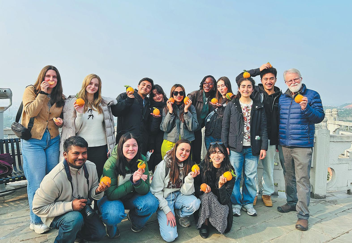 Членове на групата от университета Корнел позират за групова снимка по време на посещение през януари в база за производство на цитрусови плодове в окръг Циншен, провинция Съчуан. YU KUN/ЗА КИТАЙ ДЕЙЛИ