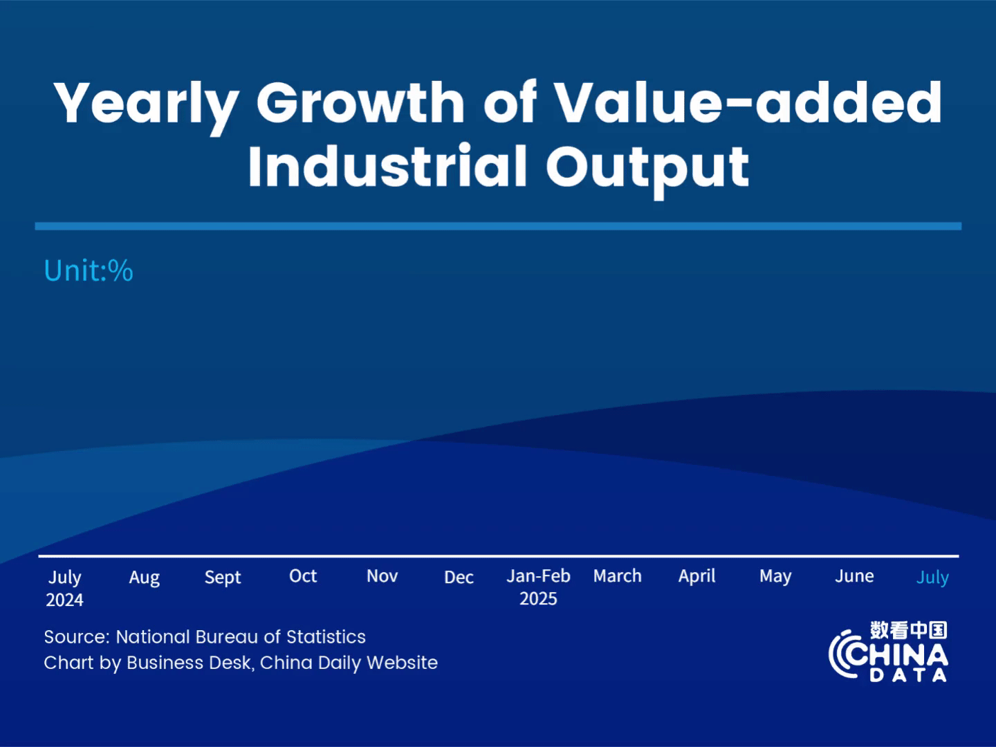 Данните, публикувани от Националното статистическо бюро, показват, че промишленото производство на Китай, което включва производството, минното дело и комуналните услуги, е нараснало с 5,7% на годишна база през юли, след увеличение от 6,8% през юни.