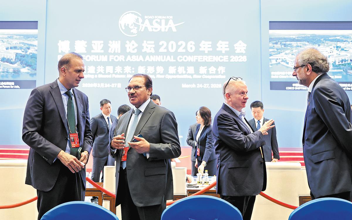 Гостите обменят мнения в четвъртък преди пленарната сесия на форума Боао за годишната конференция на Азия 2026 г. в Боао, провинция Хайнан. FENG YONGBIN / КИТАЙ ДЕЙЛИ