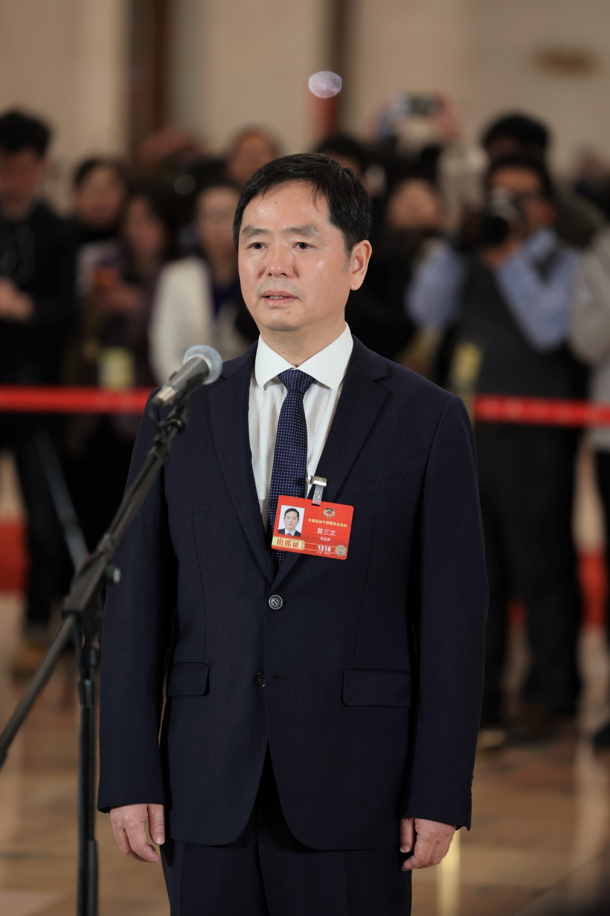 Хуанг Сануен, член на 14-ия Национален комитет на Политическата консултативна конференция на китайския народ, присъства на групово интервю преди откриващата среща на четвъртата сесия на 14-ия Национален комитет на НПКСК в Народната зала в Пекин, 4 март 2026 г. [Photo by Kuang Linhua/chinadaily.com.cn]