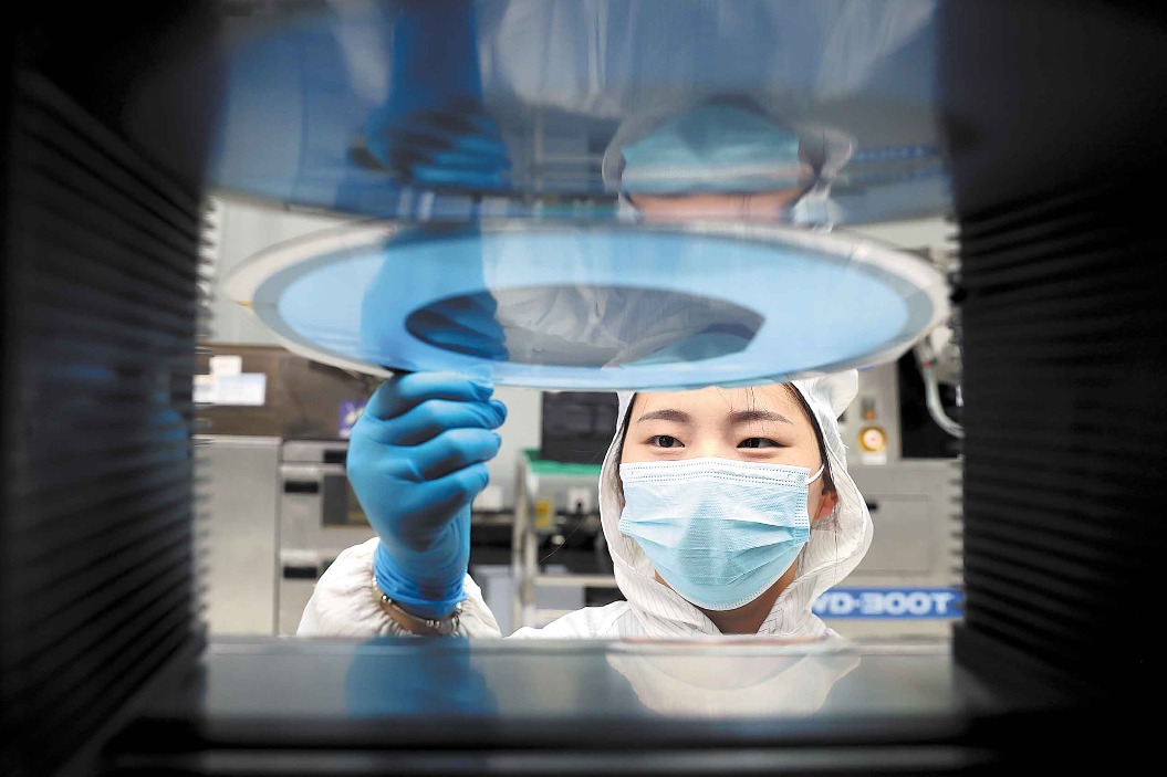 Работник работи с интелигентно оборудване за производство на опаковки за захранващи чипове и тестване на продукти за експортни поръчки в компания за полупроводници в Suqian, провинция Jiangsu, на 15 октомври. WANG LI/ЗА КИТАЙ ДАЙЛИ