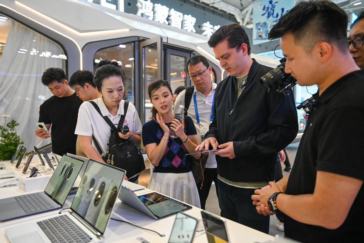 Посетителите проверяват продуктите на Huawei по време на търговски панаир в Шенжен, провинция Гуандун, на 23 май. Wang Lei/за China Daily