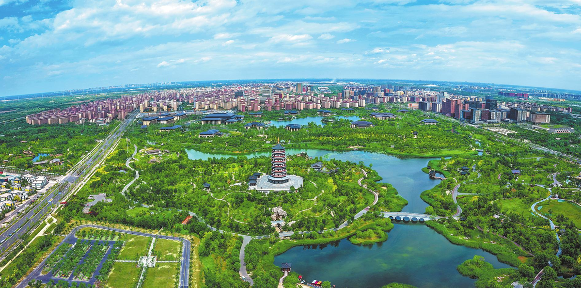 An aerial drone photo taken on June 16, 2025 shows a view of Yuerong Park in the Xiong“an New Area, Hebei province. XINHUA